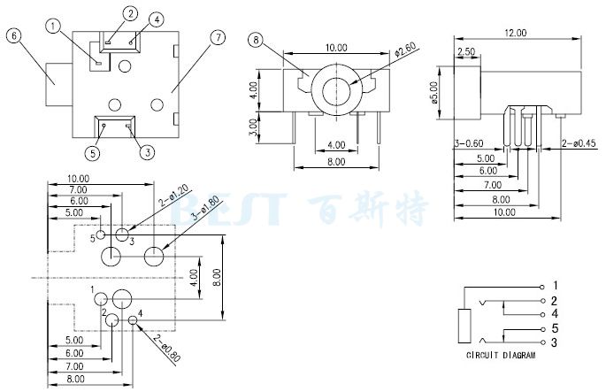 2.5耳機(jī)插座PJ-204參考圖紙